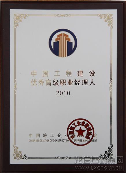 2011年4月28日,中國(guó)施工企業(yè)管理協(xié)會(huì)第二十六次年會(huì)在西安召開。此次會(huì)議宣布,我公司榮獲“全國(guó)優(yōu)秀施工企業(yè)”、我公司董事長(zhǎng)陳祖新榮獲2010年度“中國(guó)工程建設(shè)優(yōu)秀高級(jí)職業(yè)經(jīng)理人”、“全國(guó)工程建設(shè)優(yōu)秀項(xiàng)目經(jīng)理”榮譽(yù)稱號(hào)。