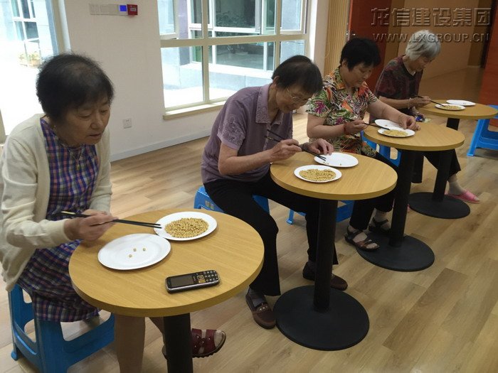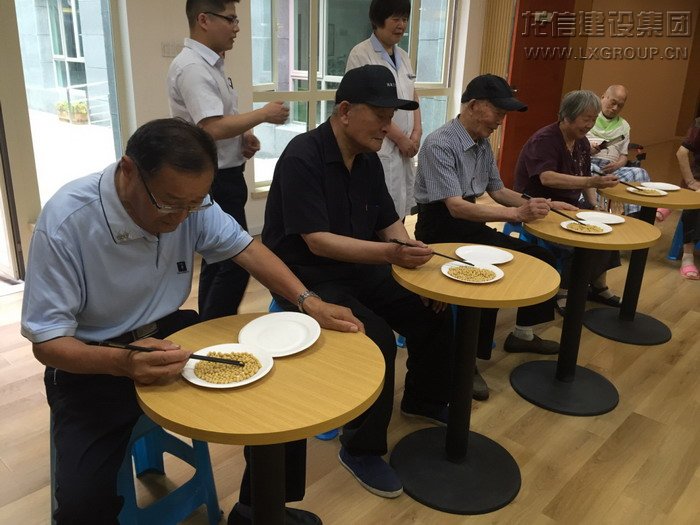 第一個比賽項目是筷子夾黃豆。裁判一聲“開始”,叔叔阿姨們便迅捷地舞動起手中的筷子,全神貫注地為這些豆子“搬家”。大部分的豆子拗不過叔叔阿姨們手中的筷子,乖乖的躺在了紙盤里。當(dāng)然,也不乏一些調(diào)皮的豆子,趁大家不注意,滑落到地上,引來圍觀長者們的陣陣笑聲。比賽分7輪進行,最后,505室的何阿姨、508室的俞阿姨、809室的趙叔叔、1001室的袁阿姨、1201室的葉阿姨、1209室的張阿姨、1301室的陸阿姨分獲各輪的第一名。