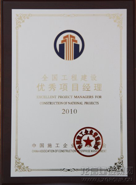 2011年4月28日,中國(guó)施工企業(yè)管理協(xié)會(huì)第二十六次年會(huì)在西安召開。此次會(huì)議宣布,我公司榮獲“全國(guó)優(yōu)秀施工企業(yè)”、我公司董事長(zhǎng)陳祖新榮獲2010年度“中國(guó)工程建設(shè)優(yōu)秀高級(jí)職業(yè)經(jīng)理人”、“全國(guó)工程建設(shè)優(yōu)秀項(xiàng)目經(jīng)理”榮譽(yù)稱號(hào)。